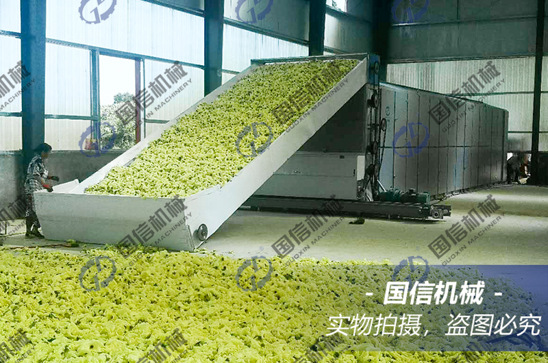 使用這種動態烘干的好處是:烘干非常的均勻。一般情況下,我們的大型網帶烘干機內部有4到6層循環網帶,也就是說,在烘干過程中,黃蜀葵會經過4至6次的循環翻轉,熱風自下而上穿透烘干時,可以讓黃蜀葵的每個部分都受到熱風的吹拂,使花朵的各部分水分散發均勻,成品干貨的品質統一。