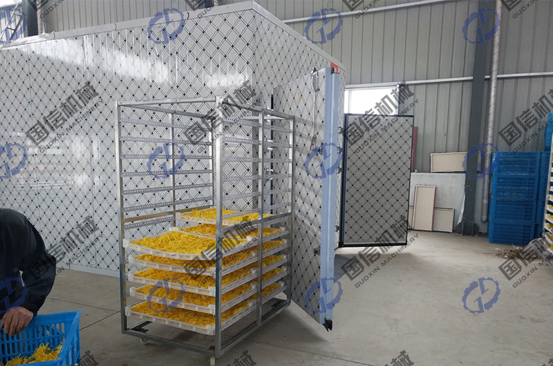 傳統的菊花烘干工藝是采用了硫磺熏蒸方式,通過破壞菊花表層蠟質,進行烘干,這種方式已經被國家禁止,少量菊花干制時,會采用晾曬方式,但是受氣候影響較大,干貨品質也不達標,有些菊花種植用戶,會采用自建烘干房來進行菊花烘干,但是受環保政策限制,目前也處于停產狀態,隨著新型的空氣能熱泵烘干機出現,以上問題都得到了解決,那么空氣能熱泵是如何實現節能菊花烘干的?我們國信機械作為專業的熱泵烘干房生產廠家,為大家做個介紹。